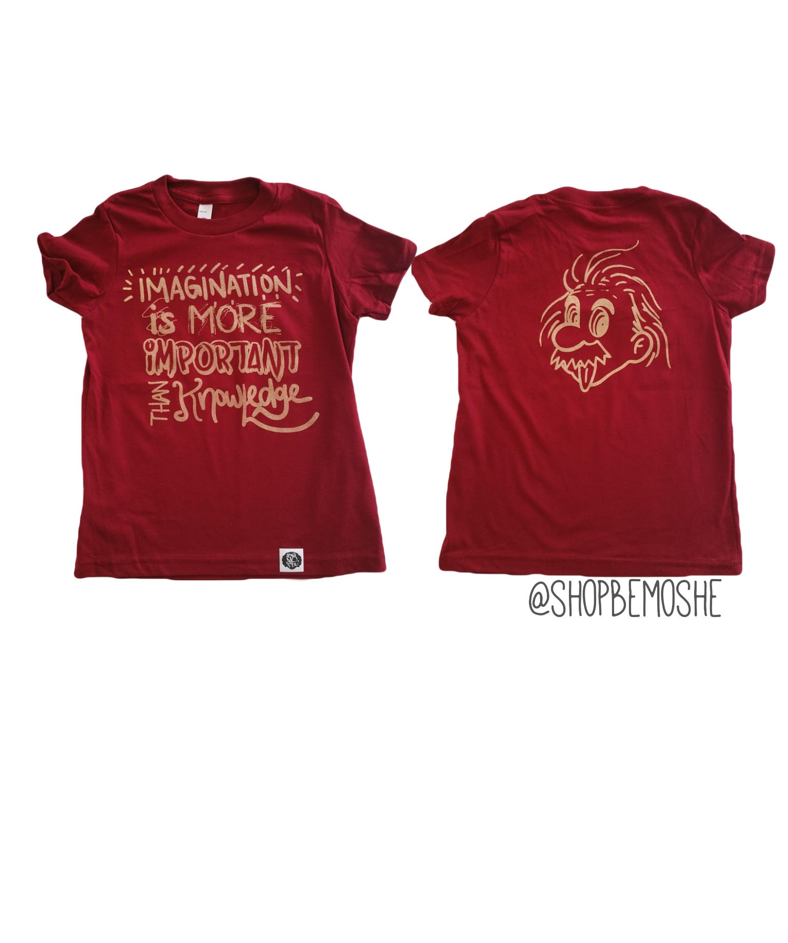 Printed on a cranberry tee with gold ink- this tee is a staple for your child's wardrobe.